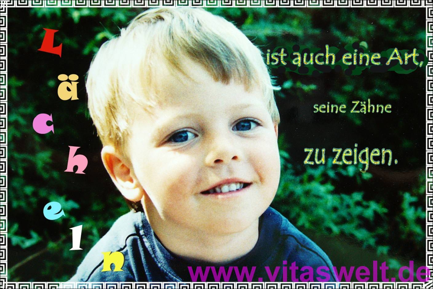 | A17 "Lächeln ist auch eine Art, seine Zähne zu zeigen." Lächeln steht in bunten, aufgeblasenen Buchstaben unter-einandergepurzelt am linken Rand der Karte.Der Rest steht am rechten Rand. Fotografiert wurde ein blonder, blau-äugiger Junge (5), der lächelnd in die Kamera schaut. Alles vor einem dunkelgrünen Hintergrund.Kartenrand verziert. Mail mit der Karte A17 versenden Karte A17 bestellen Karte A17 vergrößern | |