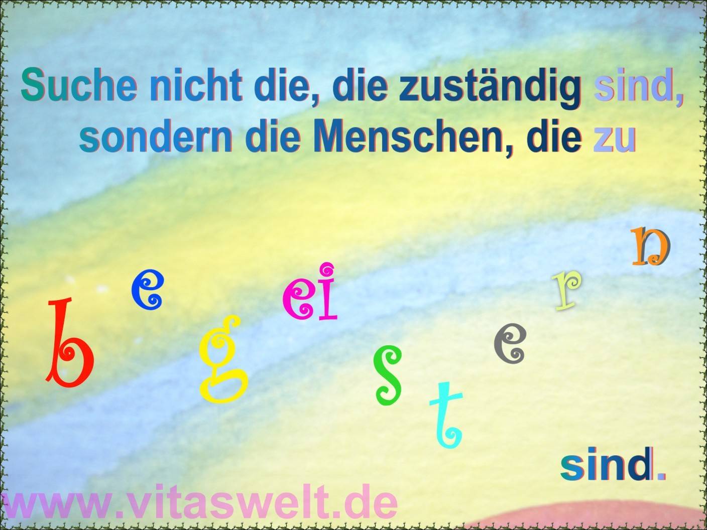 | A18** "Suche nicht die, die zuständig sind, sondern die, die zu begeistern sind." Das Wort begeistern ist in schnörkeliger Schrift geschrieben, wobei jeder Buchstabe eine andere Farbe hat. Auch sind die Buchstaben, wellenförmig angeordnet, das Zentrum der Karte. Der restliche Text ist in einfacher Druckschrift, in verschiedenen blautönen gehalten. Das Ganze steht auf einer blassen, in hellblau, hellgrün und hellgelb gewellten Aquarellmalerei. Der Rand ist filigran verziert. Mail mit der Karte A18 versenden Karte A18 bestellen Karte A18 vergrößern | |