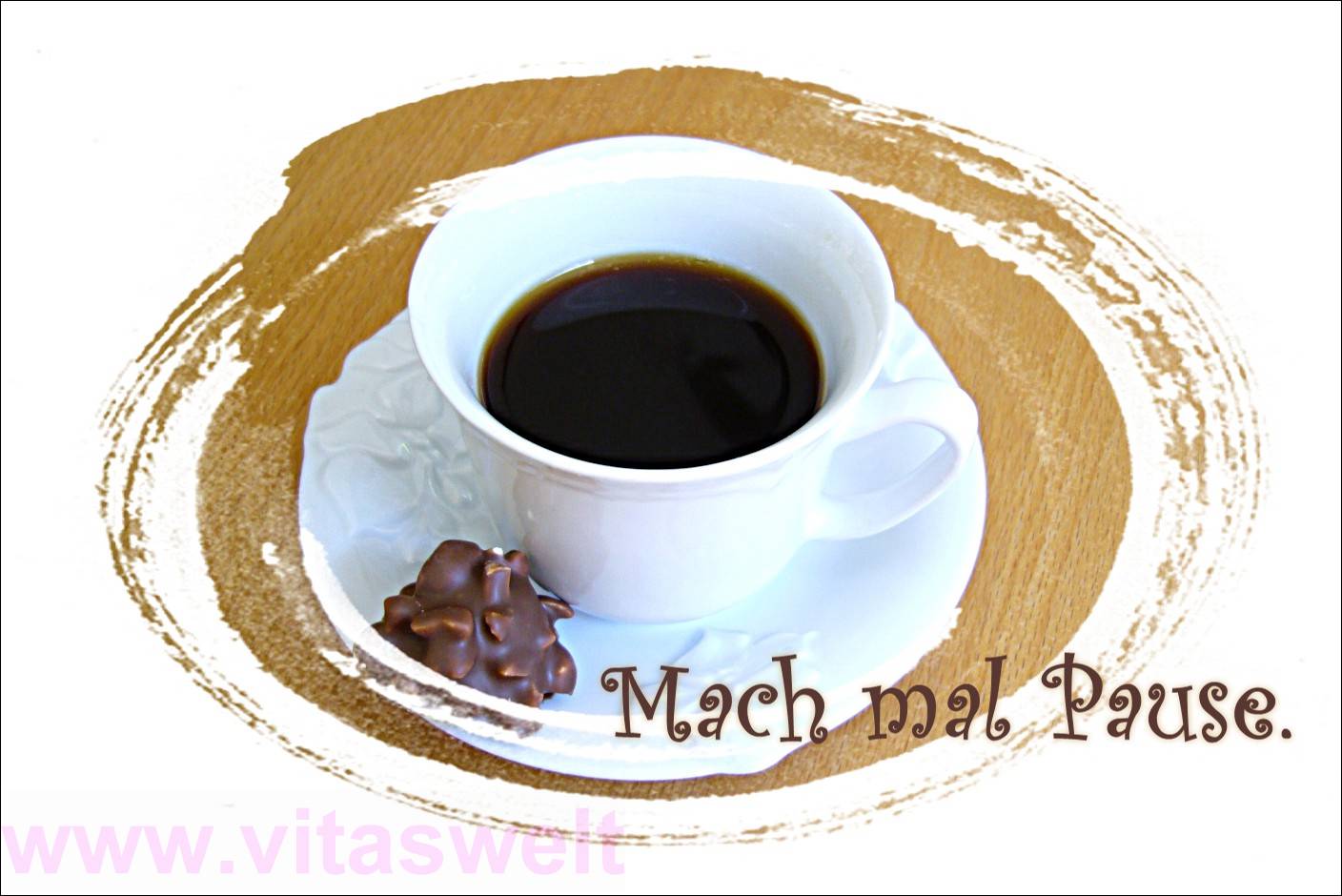 | A23 "Mach mal Pause." steht in Pralinenbraun auf einer Karte, die eine gefüllte, weiße Kaffeetasse auf einem Unterteller zeigt. Auf dem Unterteller liegt eine Praline. Das Motiv ist in einer ovalen Form auf einem weißen Hintergrund gestaltet. Die ovale Form ist in Milchkaffeefarben gehalten und ist etwas "geschliert" als ob um die Tasse gerührt würde. Schwer zu beschreiben. Einfach aber klare Anweisung. Mail mit der Karte A23 versenden Karte A23 bestellen Karte A23 vergrößern | |