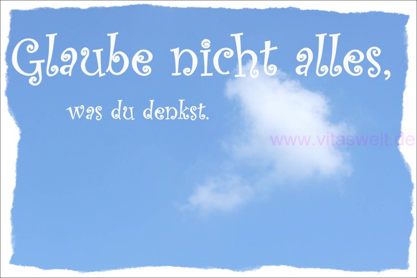 | C04 "Glaube nicht alles, was du denkst." Weiß geschriebener Spruch auf einen blauen Himmel geschrieben. In der rechten Hälfte der Karte eine Schleierwolke. Glaube nicht alles ist größer geschrieben, der Rest ist die kleine Pointe. Mail mit der Karte C04 versenden Karte C04 bestellen Karte C04 vergrößern | |