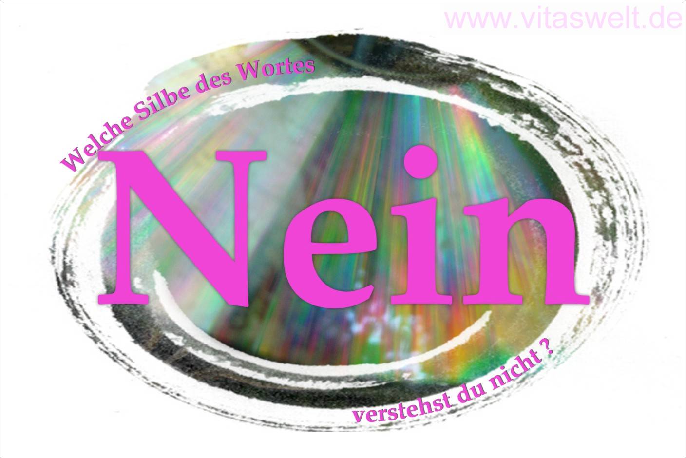 | C07 "Welche Silbe des Wortes Nein verstehst du nicht? Wobei "Nein ganz fett in der Mitte zu lesen ist. Der Anfang und das Ende stehen in gebogener Form, angepasst an das Motiv, jeweils über und unter dem Nein. Schriftzug ist pink. Abgebildet ist ein ovaler Ausschnitt einer CD. Die Nahaufnahme spiegelt unscharf die umgebende Natur wieder. Der besondere Effekt ist, dass sich durch das Licht auf der CD die Regenbogenfarben, wie in einem Prisma, wiederspiegeln. Mail mit der Karte C07 versenden Karte C07 bestellen Karte C07 vergrößern | |