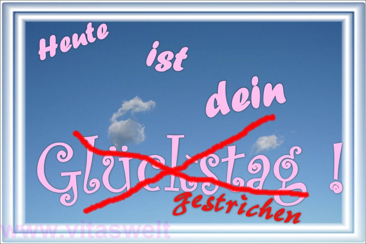 | C13 " Heute ist dein Glückstag!" steht in knallig-rosa Schrift auf einem blauen Himmel mit zwei kleinen Wölkchen. Das Wort "Glückstag" ist größer geschrieben und wurde mit der roten "Spraydose" durchgeixt. Darunter steht ebenfalls in roter Handschrift: "gestrichen". Die Karte hat einen "Bilderrahmen". Der erste freudige Blick wird sogleich vom "registrierendem Gehirn" enttäuscht. So erreicht man Aufmerksamkeit. Mail mit der Karte C13 versenden Karte C13 bestellen Karte C13 vergrößern | |