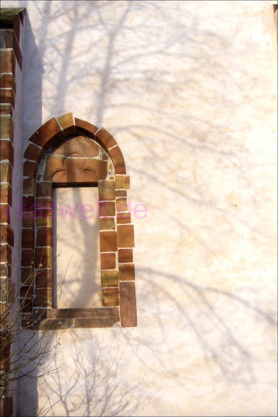 | R14 Sie schauen auf die von der warmen Herbstsonne beschienene sandverputzte Wand einer Kirche, die in hellen beige- und apricot Tönen gehalten ist. Die Farbe passt schön zu dem Sandstein gemauertem Fenster mit Spitzbogen, welches sich am rechten Rand der Karte befindet. Der zweireihige Bogen war früher der Rahmen eines Glasfensters. Heute ist dieses Fenster zugemauert und ebenso verputzt wie die übrige Wand. Interessant ist dieses Motiv vor allem dadurch, dass sich der Schatten einer hochgewachsenen Linde und ihren Verästelungen auf der Wand abzeichnet. Mich hat das warme Farbspiel angesprochen. Mail mit der Karte R14 versenden Karte R14 bestellen Karte R14 vergrößern | |