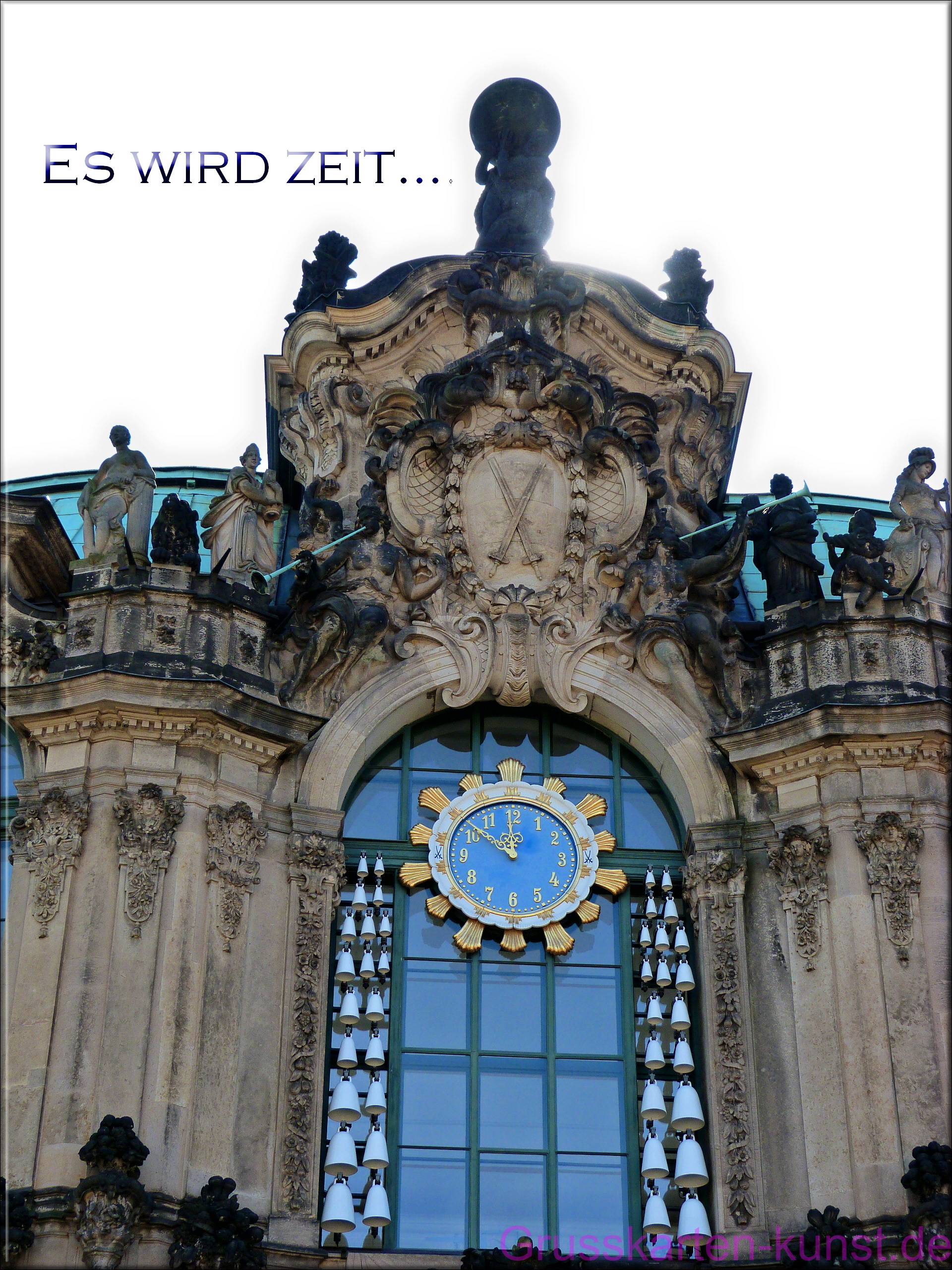 | R23 „Es wird Zeit…“ steht oben auf der Karte. Vom Innenhof des Dresdner Zwingers kann man diesen renaissance Bau bestaunen. In den Stein gehauene menschliche Figuren und florale Muster umsäumen die bogenförmige Fensterfront in deren Mitte eine Uhr mit goldenem Zifferblatt hängt. Die Zeiger zeigen etwa 8 vor 12. Links und rechts vom Fenster hängen 40 verschieden große weiße Glöckchen, die zu verschiedenen Zeiten Melodien erklingen lassen. Mail mit der Karte R23 versenden Karte R23 vergrößern | ![]() |