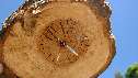 | N14 Eine 2 cm dicke Scheibe einer Buche. Im Zentrum ein dunkelbrauner Kern um den sich die Jahresringe (Winter dunkel, Sommer hell) konzentrisch vergrößern. In den ersten 10-20 Jahren sind diese Ringe eng und dunkler, danach werden die Ringe weiter und heller. Am Rand zu sehen die Rinde. Was mich zum Foto inspirierte waren die Risse im Holz, die von der Mitte nach außen hin, durch Trocknung, entstanden sind. Sie geben einen schmalen Blick auf einen strahlend blauen Himmel frei. Auch im Äußeren Bereich der Scheibe wird der Himmel sichtbar. Mail mit der Karte N14 versenden Karte N14 vergrößern | |
