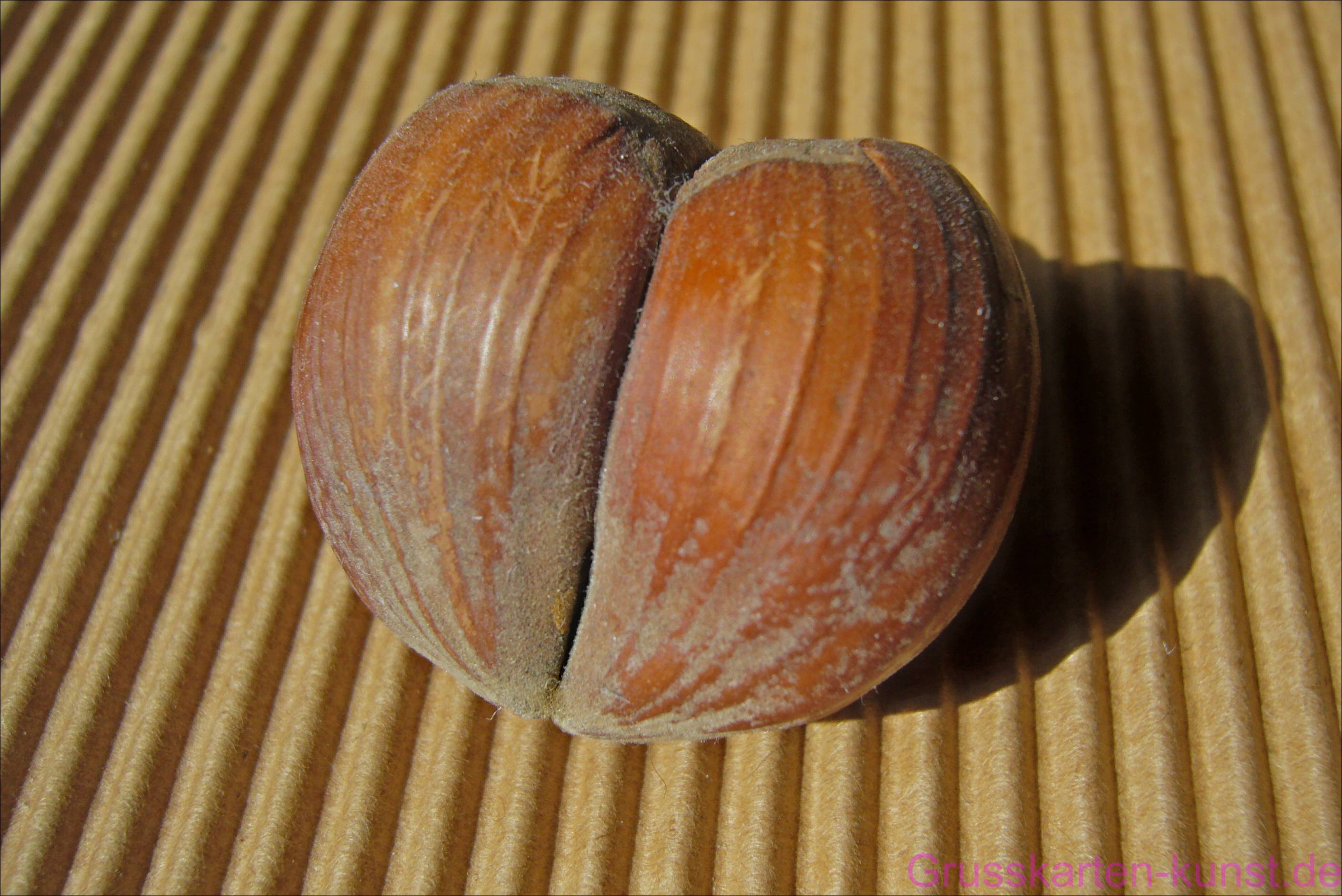 | Y02 Zwei Haselnüsse sind so aneinander gewachsen, dass sie wie ein Herz aussehen. Fotografiert auf beige farbener Strukturpappe. Mail mit der Karte Y02 versenden Karte Y02 vergrößern | |