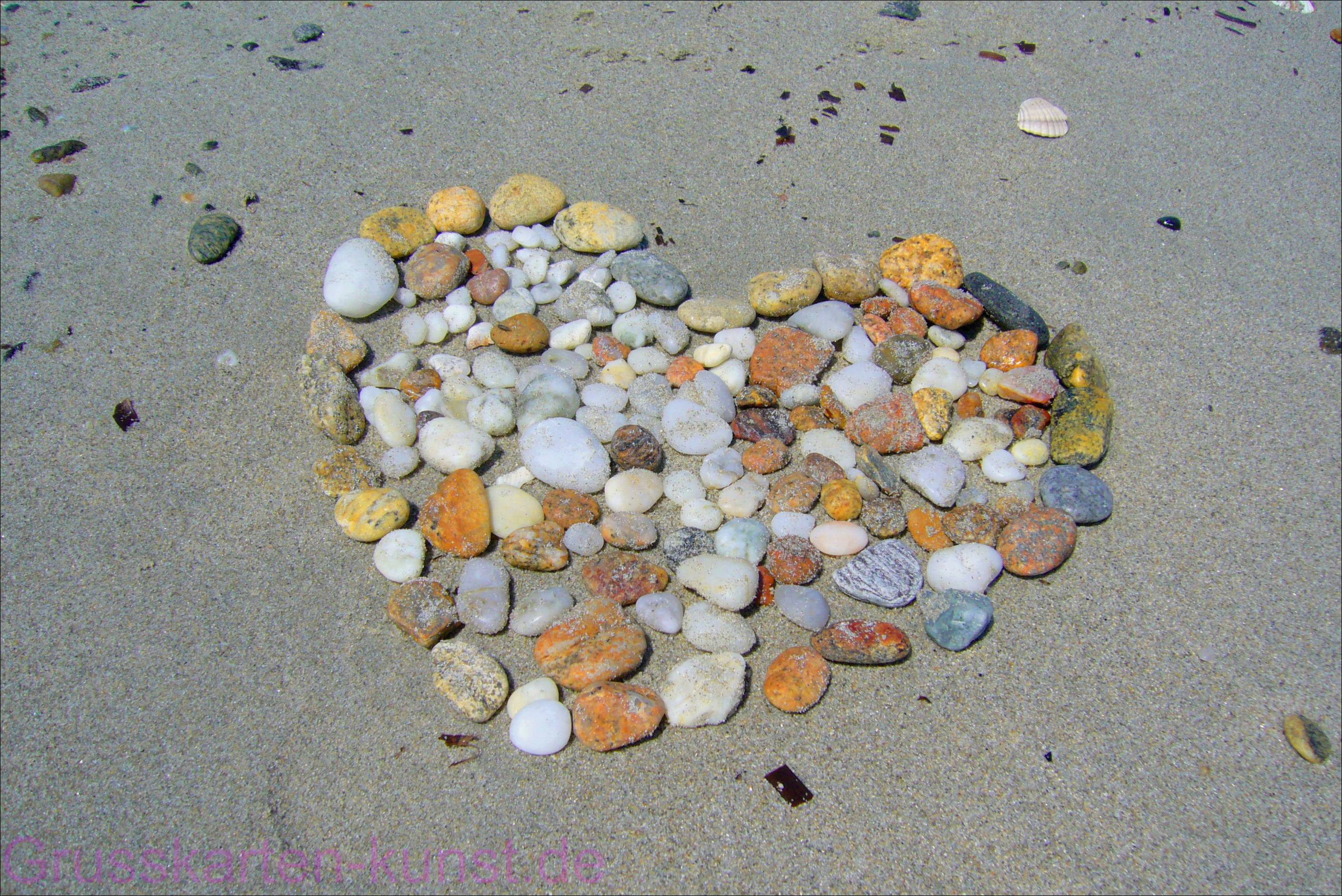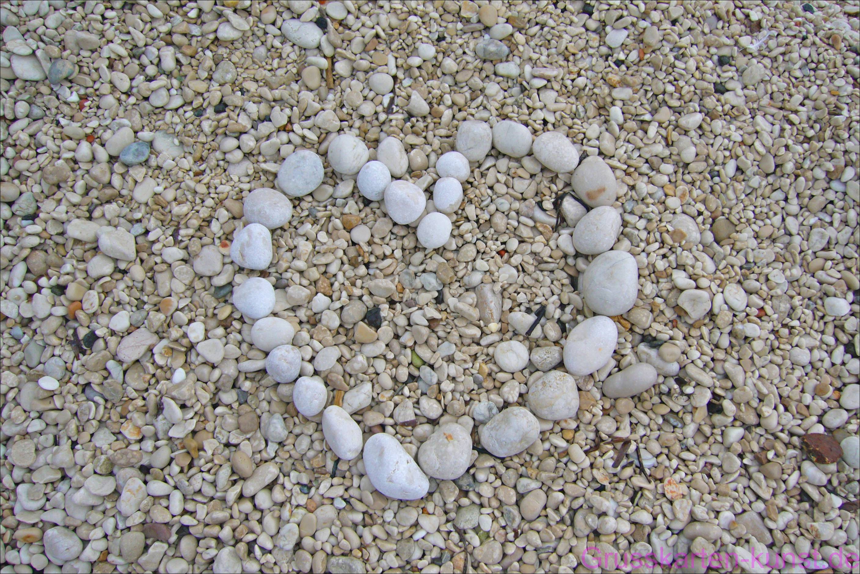 | Y08 Am Strand sammelte ich viele bunte Kiesel, die ich zu einem ausgefüllten Herzen an das Ufer legte. Knackige Draufsicht. Mail mit der Karte Y08 versenden Karte Y08 vergrößern | |