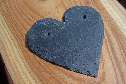 | Y06 Ein Herz aus einer Schieferplatte geschnitten liegt auf einer schönen, rötlich schimmernden Lärchenholzplatte. Mail mit der Karte Y06 versenden Karte Y06 vergrößern | |