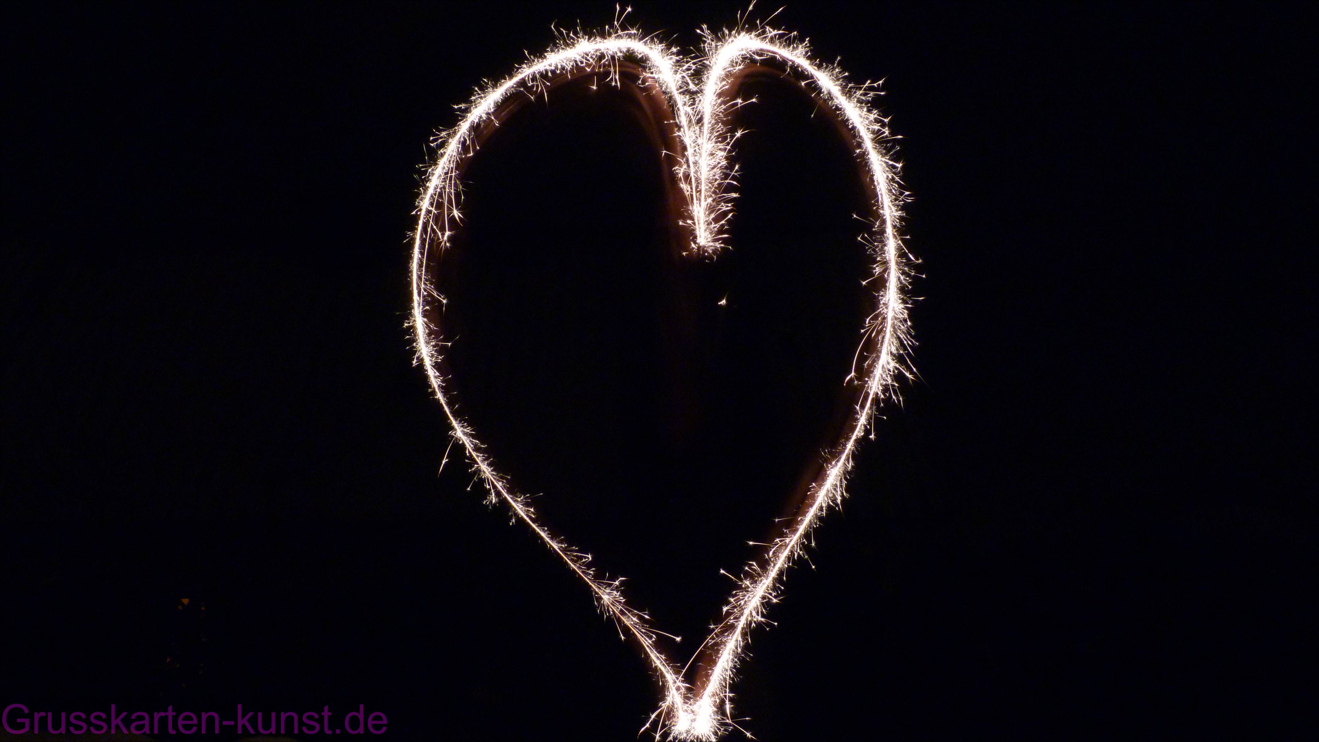 | Y12 Es ist Nacht. Ich stehe mit je einer brennenden Wunderkerze in der Hand vor die Brust gehalten im Garten. Die Kamera macht Klick. Ich bewege beide Arme synchron so, dass der Lichtstreifen eine Herzform beschreibt. Klick-ende. Ein funkensprühendes, silbriges Herz umgeben von Dunkelheit. Mail mit der Karte Y12 versenden Karte Y12 vergrößern | |