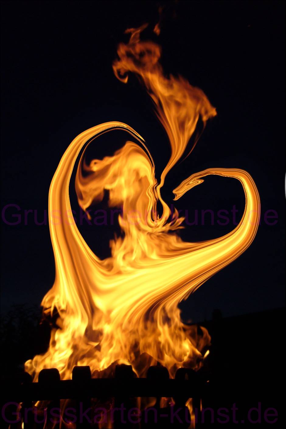 | Y25 Ein loderndes Feuer mit bizarrem Flammenspiel (ausgefranste Ränder, goldgelbe bis kupferrote züngelnde Flammen vor schwarzem Hintergrund). Mit einer Wischtechnik habe ich in die flackernden Flammen ein Herz geformt. Loderndes Feuer für?.... Mail mit der Karte Y25 versenden Karte Y25 vergrößern | |