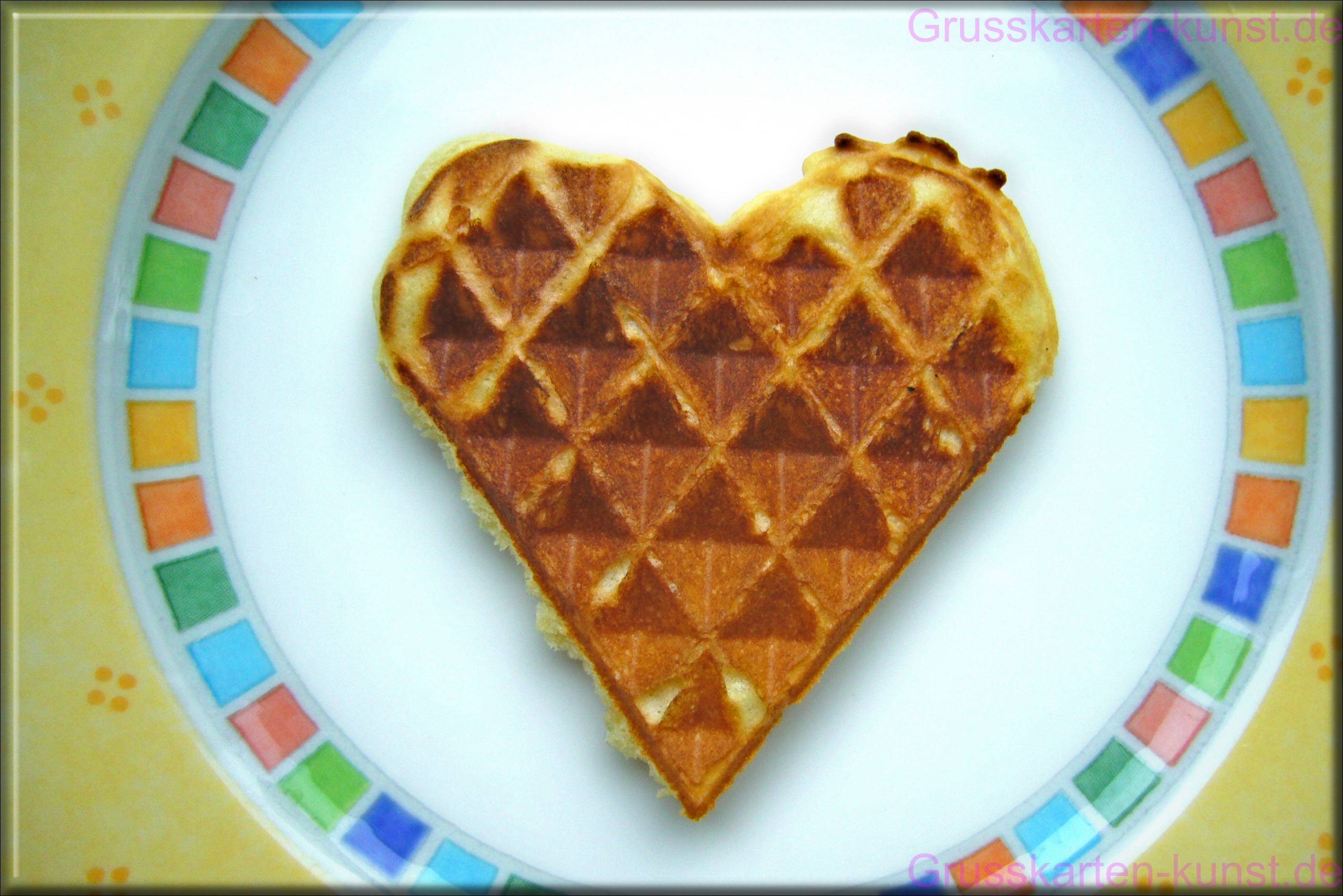 | Y28 Eine Herzförmig gebackene, knusprig braune Waffel liegt auf einem weißen Teller mit einem bunten Karo Rand. Unspektakulär, aber vielleicht eine schöne gemeinsame Aktion ? Mail mit der Karte Y28 versenden Karte Y28 vergrößern | |