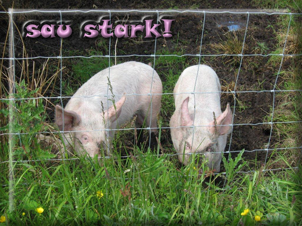 | E14 "sau stark!" steht in Rosa oben auf der Karte. Zwei Glückliche Schweine grasen im saftigen Gras mit Butterblumen, hinter sich einen kleinen Tümpel zum Suhlen. Schlanke Körper, spitze Ohren und noch recht sau ber. Echt irische Glücksschweine Foto: Werner, Irland, Connaught Mail mit der Karte E14versenden Karte E14 vergrößern | | |