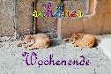 | E24 "schönes Wochenende" steht in schnörkeliger dunkellila Schrift auf der Karte. Das Wort schönes ist in 7 verschiedenen Farben geschrieben, so peppt die Karte richtig schön. Als Motiv sieht man zwei getigerte Katzen, die in gleicher Position eingerollt, auf einem gepflasterten Boden, vor einer sandroten Mauer liegen und schlafen. Herrlich entspannt, gefunden in Tunis. Mail mit der Karte E24versenden Karte E24 vergrößern | | |