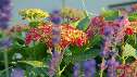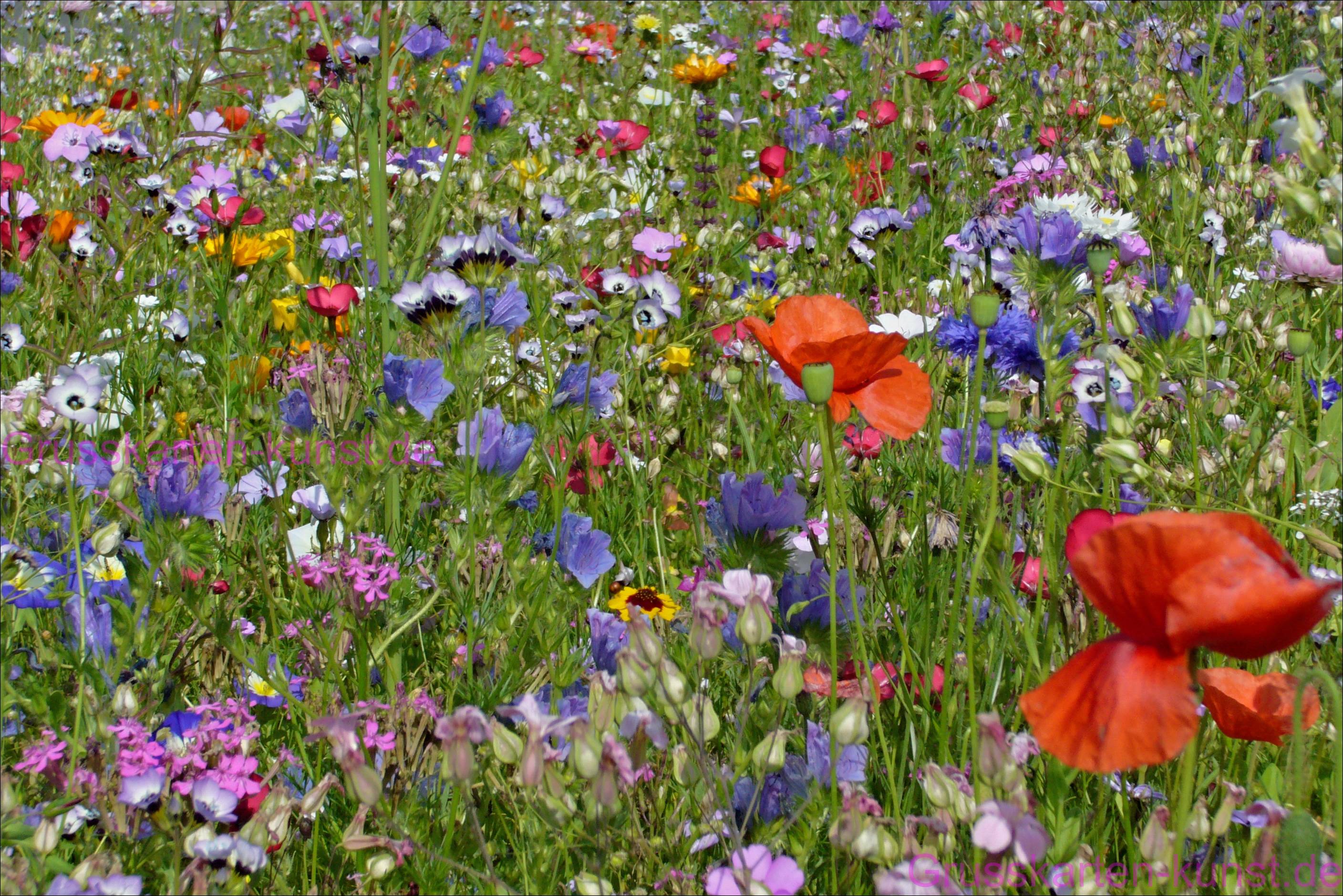 | B41 Knallbunte Sommerblumen-Kräuterwiese. Wildes Durcheinander von Mohnrot über Violett, Lila, Gelb, Orange, Rosa bis hin zu den verschiedenen Grüntönen der Blätter und Stengel. Mail mit der Karte B41 versenden Karte B41 vergrößern | |