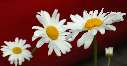 | B60 Drei offene, weiße Margeritenblüten mit gelber Mitte sieht man diagonal nebeneinander stehend. Eine vierte, noch geschlossene Blüte versteckt sich unten rechts. Das ganze vor einem dunkelrot, unscharfem Hintergrund. Nette Juni Freude. Mail mit der Karte B60 versenden Karte B60 vergrößern | |