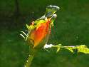 | B06 Blütenknospe in glutorange-goldgelb im Lichtglanz der Sonne. Zwischen zwei grünen Blütenkranzblättern spannt sich ein schimmerndes Spinnennetz. Hintergrund verschwommen grasgrün. Rose: Sutters Gold. Mail mit der Karte B06 versenden Karte B06 bestellen Karte B06 vergrößern | |