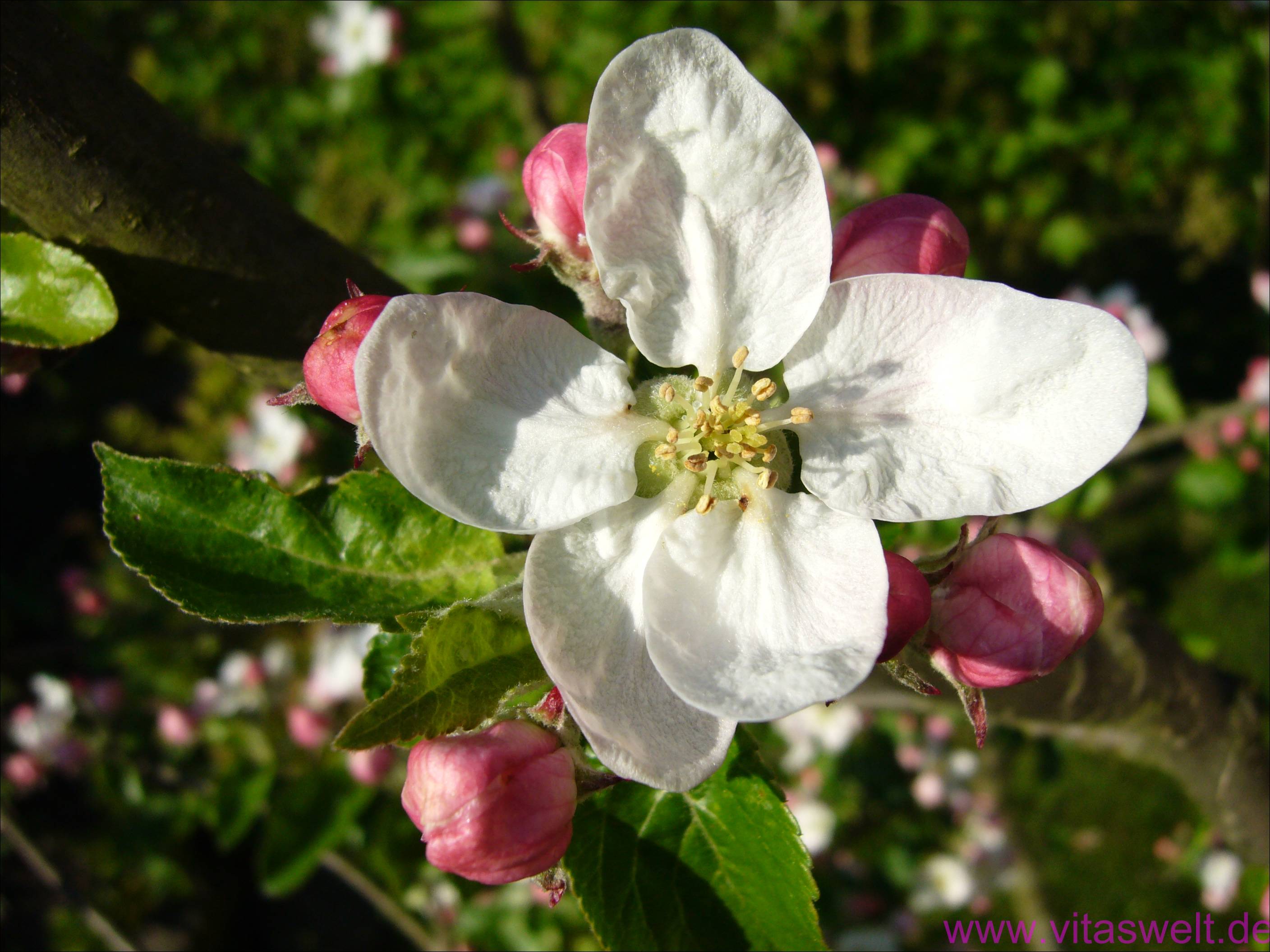 | B09 Offene Apfelblütenknospe weiß mit gelbem Pollenstand eingerahmt von rosa- weißen geschlos- senen Blütenknospen. Hintergrund hellgrünes Blattlaub und brauner Astabschnitt. Mail mit der Karte B09 versenden Karte B09 bestellen Karte B09 vergrößern | |