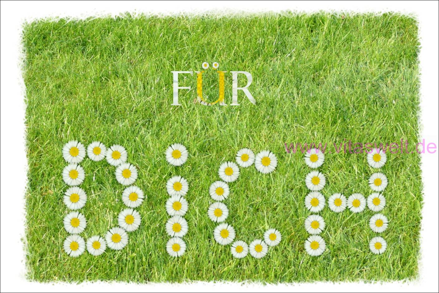 | V25** "Für dich" ist geschrieben mit Gänseblümchenblüten auf leuchtend, frischem Gras. Das Wort "Dich" nimmt den halben unteren Kartenteil ein. Eine tolle Karte mit weichem Rand, die man auch einfach so an ein Geschenk hängen kann. Mail mit der Karte V25 versenden Karte V25 bestellenKarte V25 vergrößern | |
