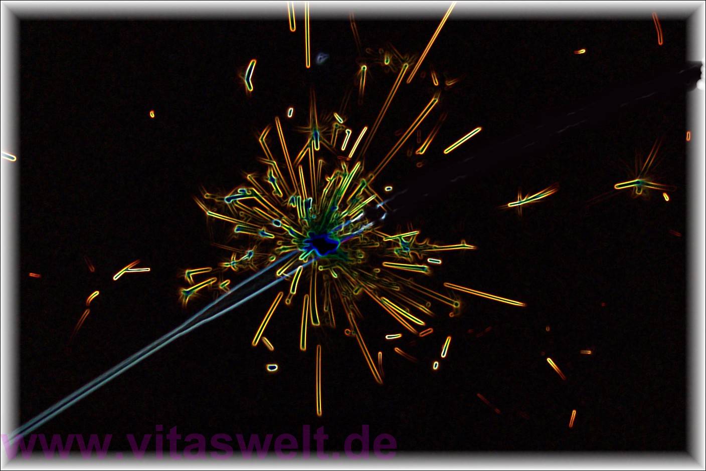 | V29 Hier fotografierte ich eine brennende Wunderkerze, die ihre Funken in alle Richtungen sprüht. Der helle Mittelpunkt wirkt, durch die computertechnisch bearbeitete Fotografie, bläulich. Die nach außen spritzenden Funken schillern in vielen Farben. Sieht aus, wie ein im Himmel zerplatzender Feuerwerkskörper. Ohne Schriftzug für individuelle Wünsche zu jedem Anlass. Mail mit der Karte V29 versenden Karte V29 bestellenKarte V29 vergrößern | |