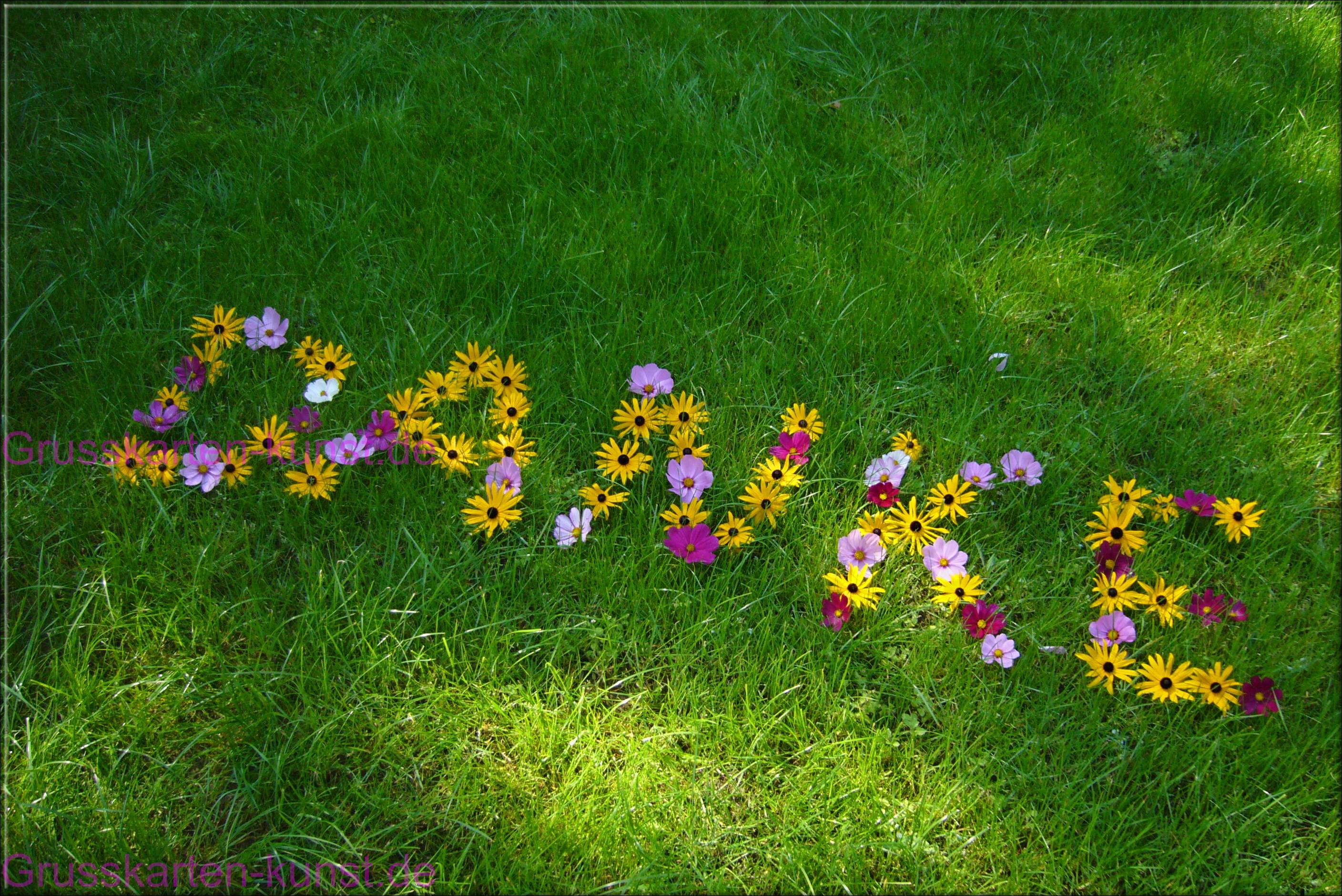 | V35 Auf einer frisch gesäten, saftigen Wiese liegt das Wort Danke - geschrieben mit den gelben Blüten des Sonnenhutes. Dazwischen liegen immer wieder rosa, pinke oder weiße Blüten der Kosmea. Sonnenlicht blinzelt durch Bäume auf das Gras. Verspieltes, hübsches, diagonal geschriebenes Motiv. Ein Danke kommt immer gut an - und so dekorativ ? Bitte! Mail mit der Karte V35 versenden Karte V35 vergrößern | |