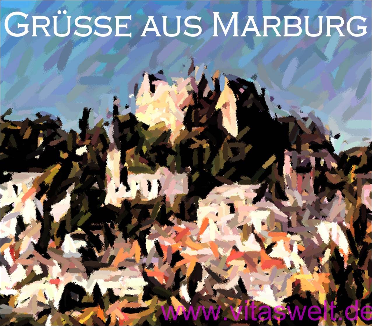 | V13 "Grüße aus Marburg" Auf der Karte sieht man die von der Sonne angestrahlte Oberstadt, die alte Universität, Pfarrkirche und das Schloss vor blauem Himmel. Dies ist ein verfremdetes Foto und sieht aus wie mit Kohlestiften gezeichnet. Mail mit der Karte V13 versenden Karte V13 bestellen Karte V13 vergrößern | |