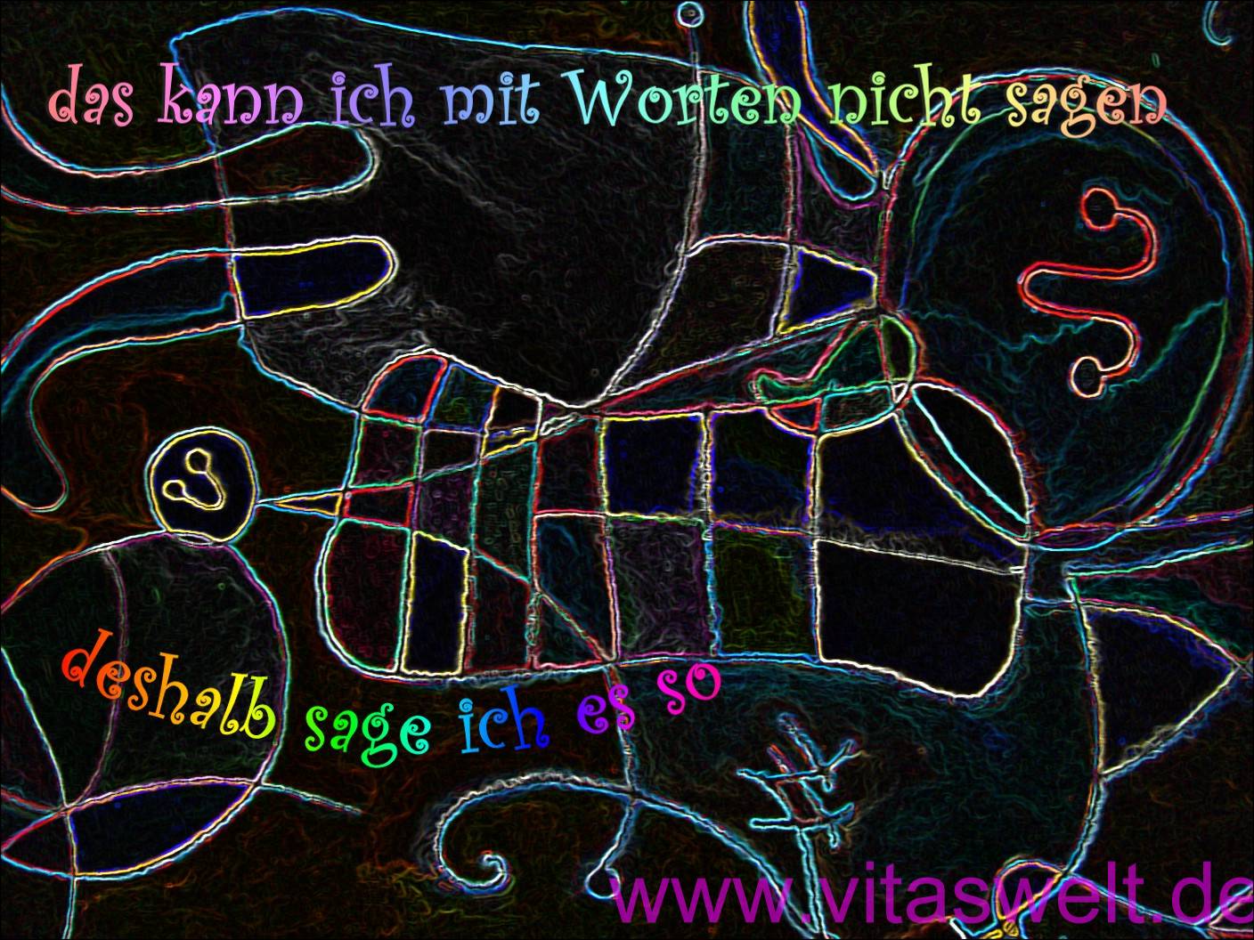 | V14 "Das kann ich mit Worten nicht sagen, darum sage ich es so." Dieser Schriftzug in Regenbogenfarbe steht auf einer Karte deren Hintergrund schwarz ist. Dieses Schwarz wird durchzogen von Linien in Regenbogenfarben. Dargestellt sind zwei Figuren, die sich gegenüberstehen. Die ganze Skizze erinnert an die kindlichen Zeichnungen von Miro. Glitzernd, phantastisch. Mail mit der Karte V14 versenden Karte V14 bestellen Karte V14 vergrößern | |