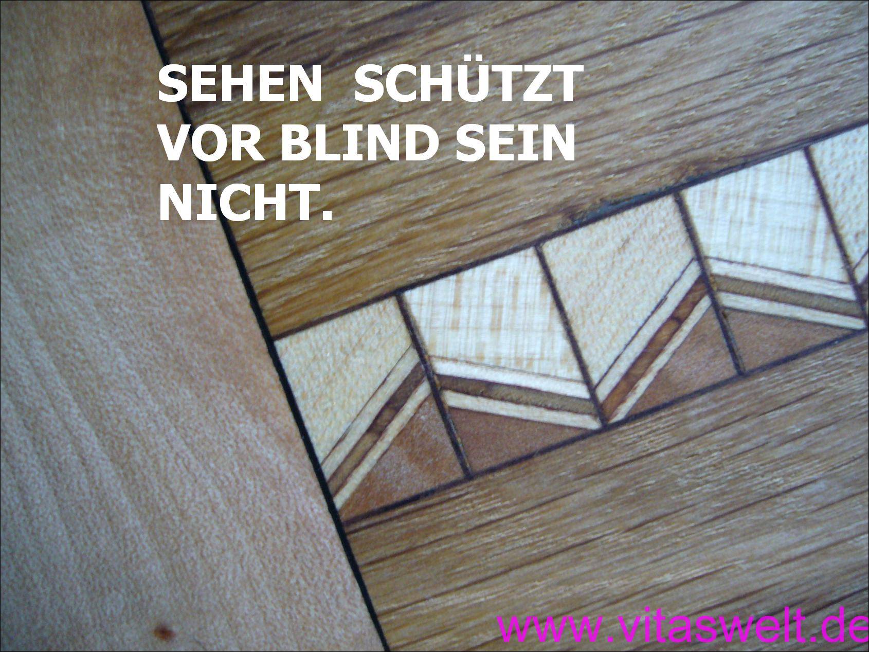 Z02 SEHEN schützt vor blind sein nicht. Spruch auf gemasertem Holzbrett (Detailaufnahme), welches mit verschiedenen hellen und dunklen Hölzern zusammengesetzt wurde. (Flechtmuster) | |