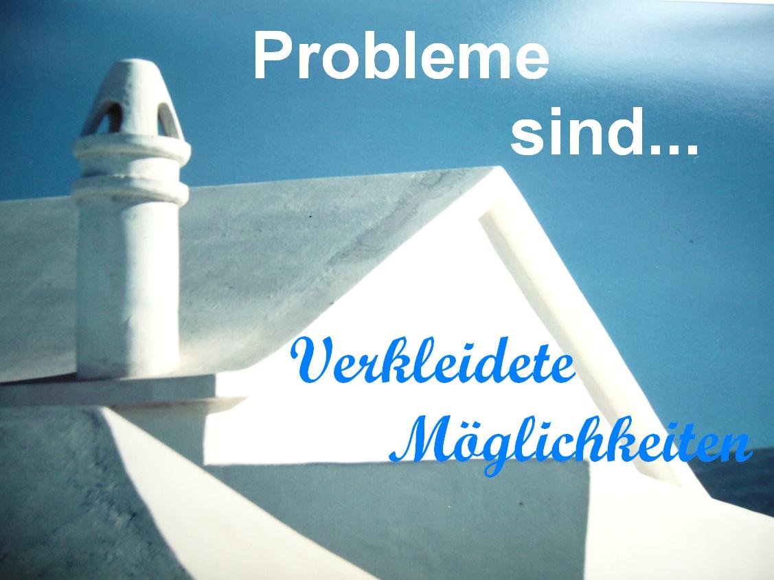 | Z12 Probleme sind verkleidete Möglichkeiten. Spruch auf Abbildung eines völlig in weiß getünchten Dachgiebels mit gekalktem Schornstein und Terasse vor blauem Himmel. Licht und Schatten spielen alle hellblau-weißgrauen Farben aus. Mail mit der Karte Z12 versenden Karte Z12 bestellen Karte Z12 vergrößern | |