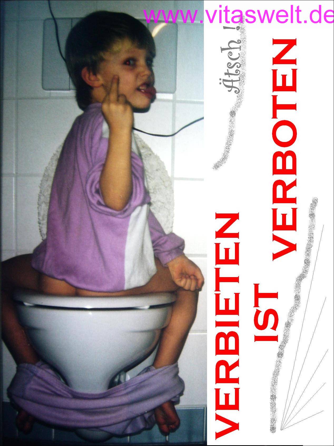 | Z15 "Verbieten ist verboten. Ätsch" steht in roten Druckschrift lettern quer zur Bildrichtung am rechten Rand auf einem weißen Grund. Linksseitig sieht man einen kleinen frechen Jungen, der verschmitzt die Zunge rausstreckt und sich umdrehend, dem Fotografen den Mittelfinger hinstreckt. Das ganze passiert während der Frechdachs rittlings auf der Toilettenschüssel sitzt und vom rosa Schlafanzug die Hose nur noch auf den Füßen hängt. Augenzwinkernd amüsant. Mail mit der Karte Z15 versenden Karte Z15 bestellen Karte Z15 vergrößern | |