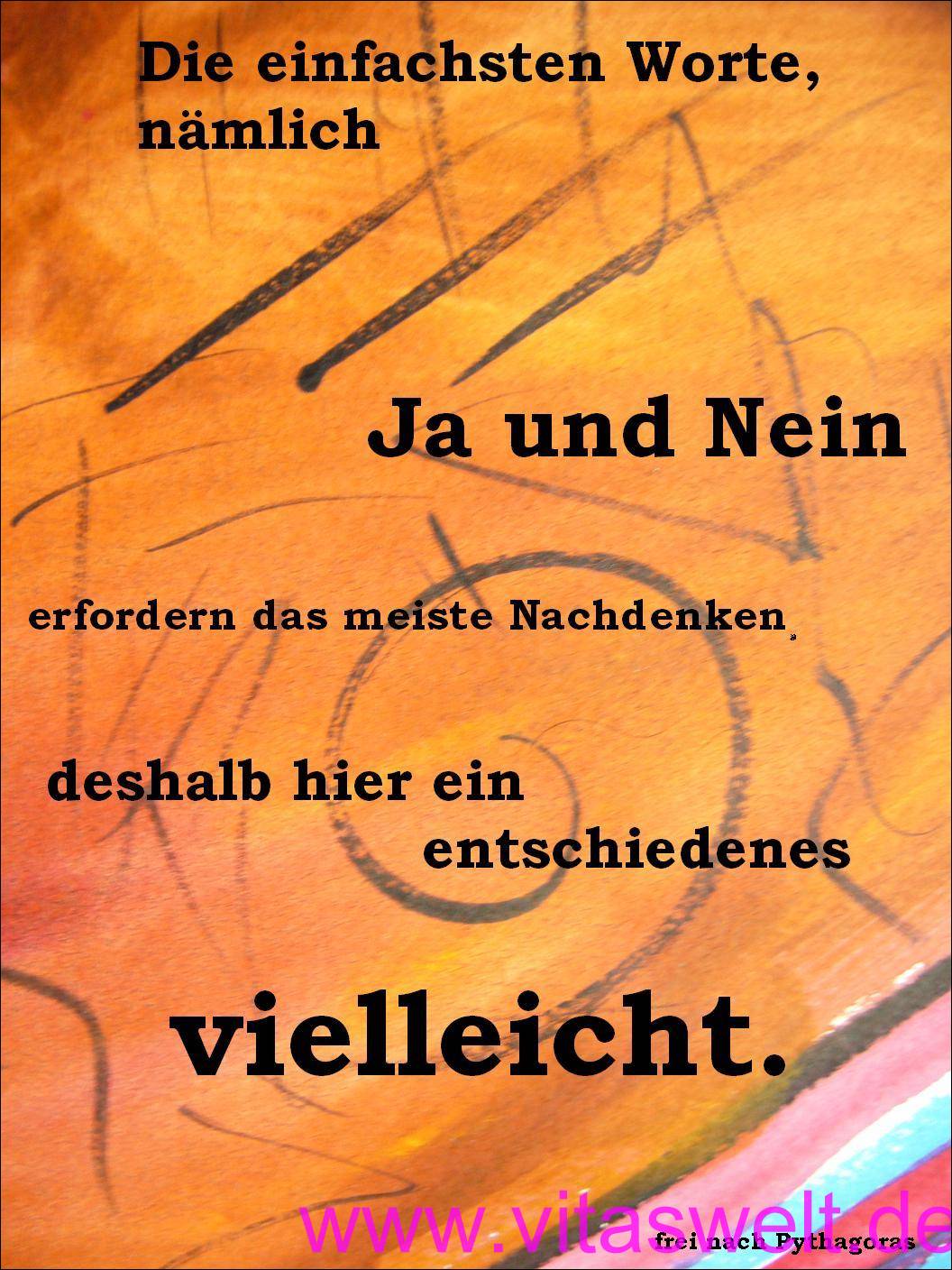 | Z17 "Die einfachsten Worte, nämlich Ja und Nein, erfordern das meiste Nachdenken (nach Pythagoras) deshalb hier ein entschiedenes Vielleicht!" Spruch auf einer in rostroten und rotgold gehaltenen Karte in Hochformat. Darauf sind in grau-schwarz eine Spiralen, Wellen, Striche diverser Art zu sehen. Unruhiges Muster, welches die Zerrissenheit verdeutlicht. Mail mit der Karte Z17 versenden Karte Z17 bestellen Karte Z17 vergrößern | |