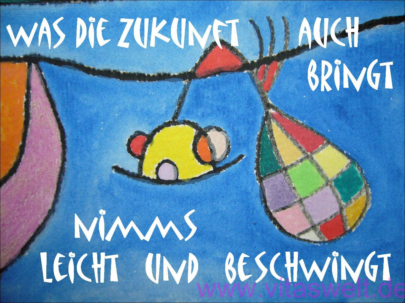 | Z20 "Was die Zukunft auch bringt, nimms leicht und beschwingt" Überwiegend blaues Aquarell, welches von links nach rechts mit einem schwarzen, gewellten Strich durchzogen ist. An dieser"Leine" baumeln merkwürdig bunte Figuren in bunten Farben. Im Stil von Miro- Kunstwerken. Mail mit der Karte Z20 versenden Karte Z20 bestellen Karte Z20 vergrößern | |