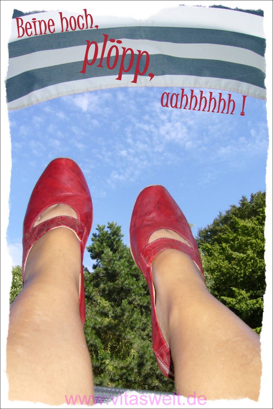 | Z24 "Beine hoch, plöpp, aahhhhh!" steht in roter Schrift etwas durcheinander gepurzelt am oberen Rand der Karte. Dort sieht man auch den blau-weiß gestreiften Rand eines Sonnenschirms. Darunter ein knallblauer Himmel mit Schäfchenwolken, darunter ein von der Sonne angeleuchteter Waldrand. Vom unteren Rand strecken sich zwei braune Schienbeine in die Bildmitte hoch, an deren Ende zwei Füße in roten Schuhen stecken. Zum Nachahmen geeignet. Mail mit der Karte Z24 versenden Karte Z24 bestellen Karte Z24 vergrößern | |