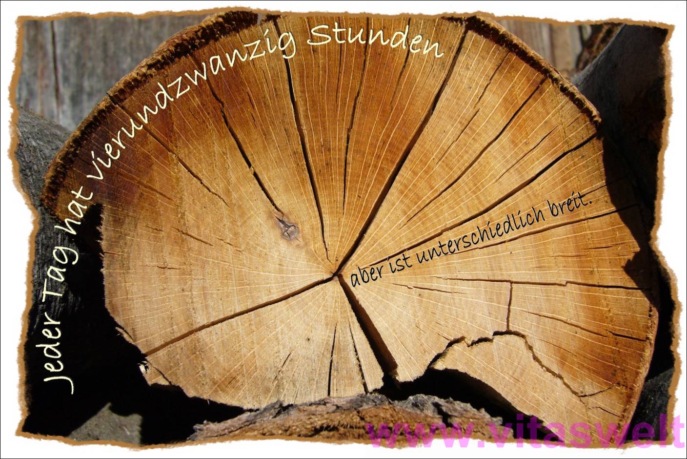 | Z25 "Jeder Tag hat 24 Stunden, aber ist unterschiedlich breit". Der erste Teil steht in einem Halbkreis um einen zum Trocknen aufgestapelten Baumstamm. Dieser ist von der Mitte nach außen hin an vielen Stellen aufgeplatzt, sodass unterschiedlich breite Risse vom Zentrum nach außen abstrahlen. Die Draufsicht auf die Baumscheibe hat unterschiedlich schattierte Beige- Brauntöne. Der zweite Teil ist in etwas kleinerer, dunkler Schrift, wie ein Zeiger vom Mittelpunkt nach rechts oben schräg geschrieben. Karte gibt es auch mit Schriftzug "Pass auf Dich auf!" Mail mit der Karte Z25 versenden Karte Z25 bestellen Karte Z25 vergrößern | |