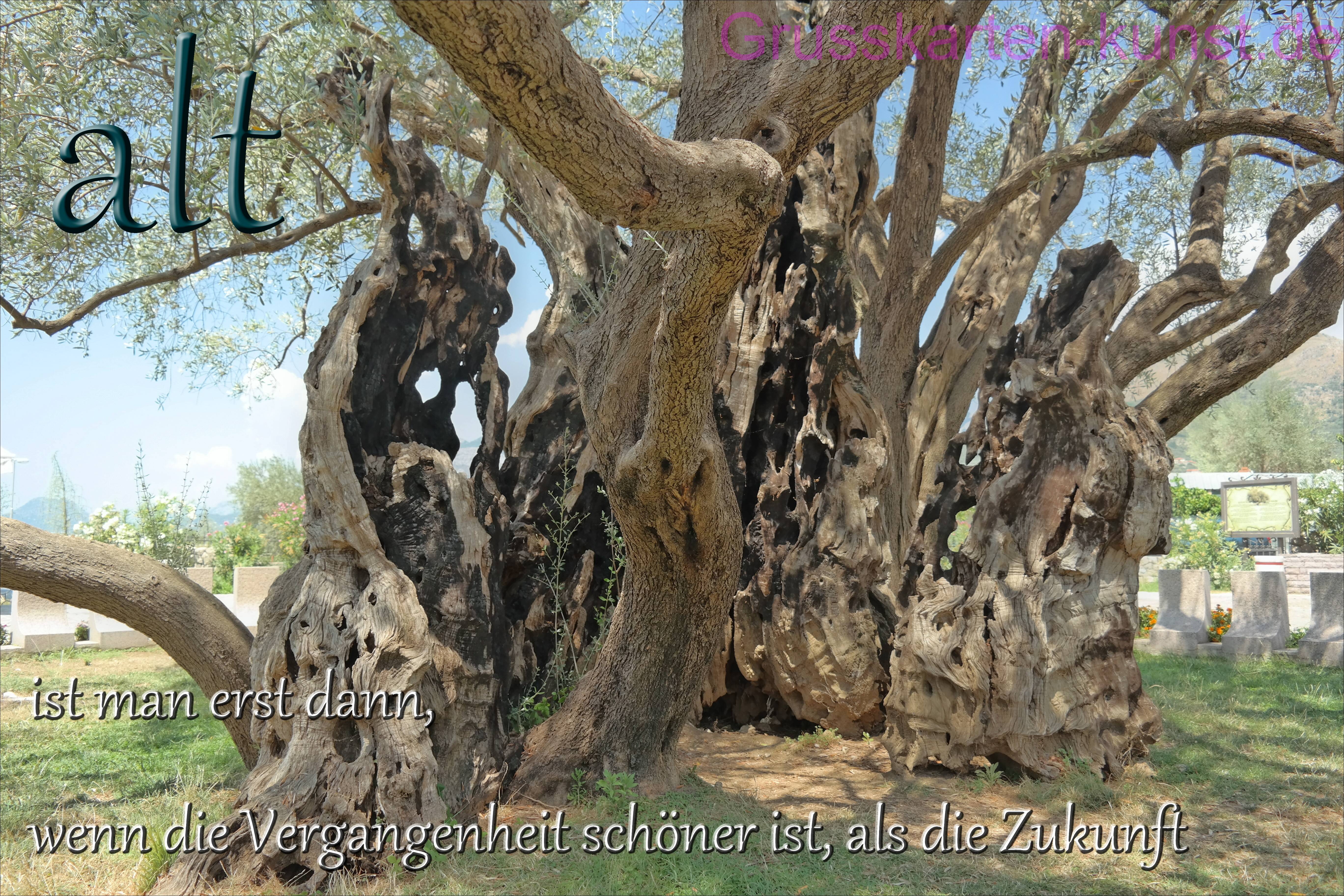 | Z41 "Alt ... ist man erst dann, wenn die Vergangenheit schöner ist als die Zukunft" steht dezent am unteren Rand der Karte. Diese zeigt einen der ältesten Olivenbäume der Welt (über2000Jahre) Der Baum steht auf einem geschützten Platz von Gras und blauem Himmel umgeben in Stari Bar, Montenegro. Der Baum gat einen Durchmessen von ca. 2-3 Metern, aber nicht in einem Stamm, sondern einen Hauptstamm, der teilweise hohl und löchrig ist und vielen verschieden dicken weiteren Stämmen, die aus dem Hauptstamm (der Erde) hervorwuchsen. Dieser knorrige, bizarre Baum, durch dessen Rinde man teilweise den blauen Himmel sieht ist ein lebendes Schmuckstück. Wie unwichtig wir Menschen dagegen erscheinen. Mail mit der Karte Z41 versenden Karte Z41 vergrößern | |